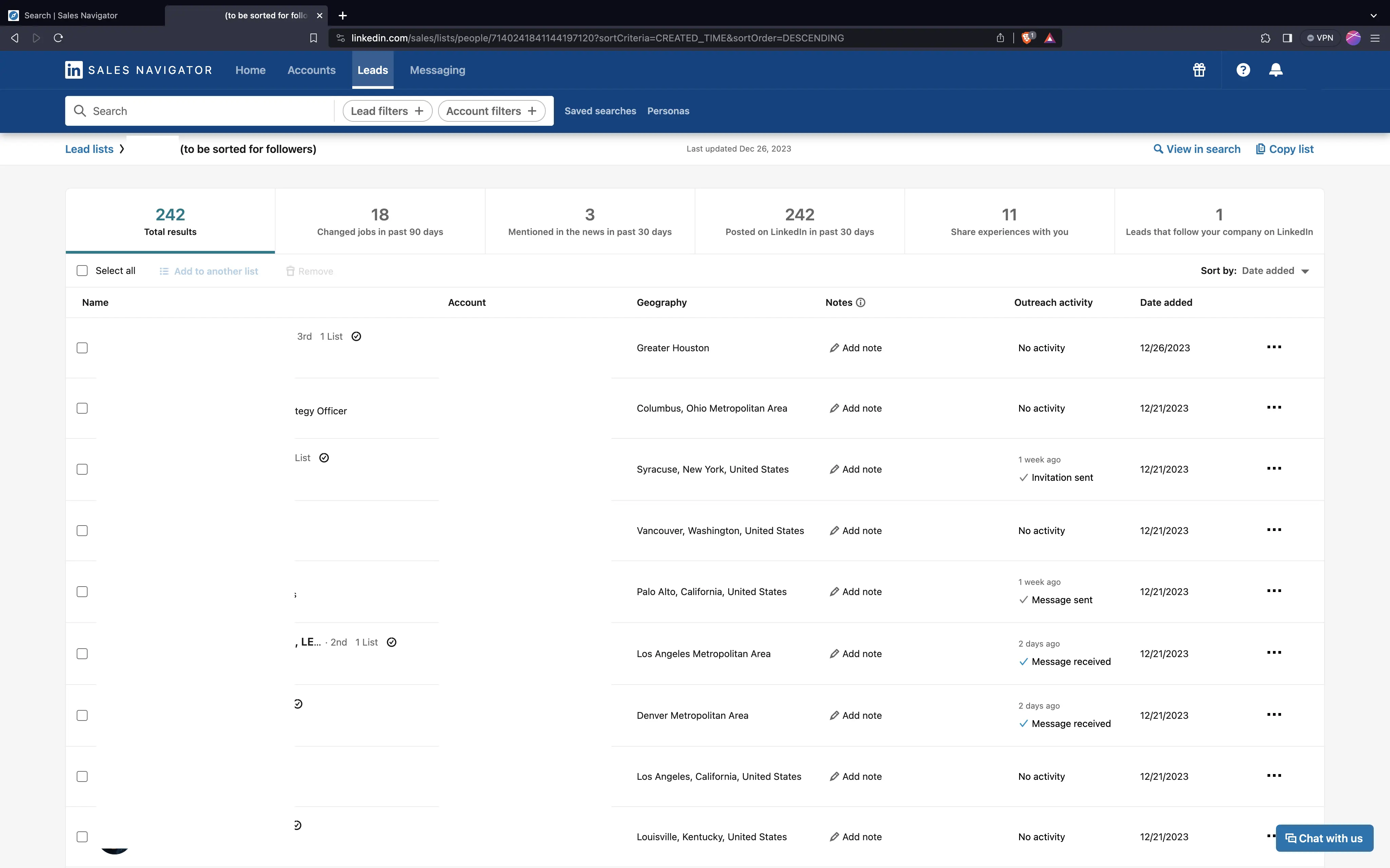 5. If not saved in any particular list, you can find them in Saved Leads which is automated list by LinkedIn