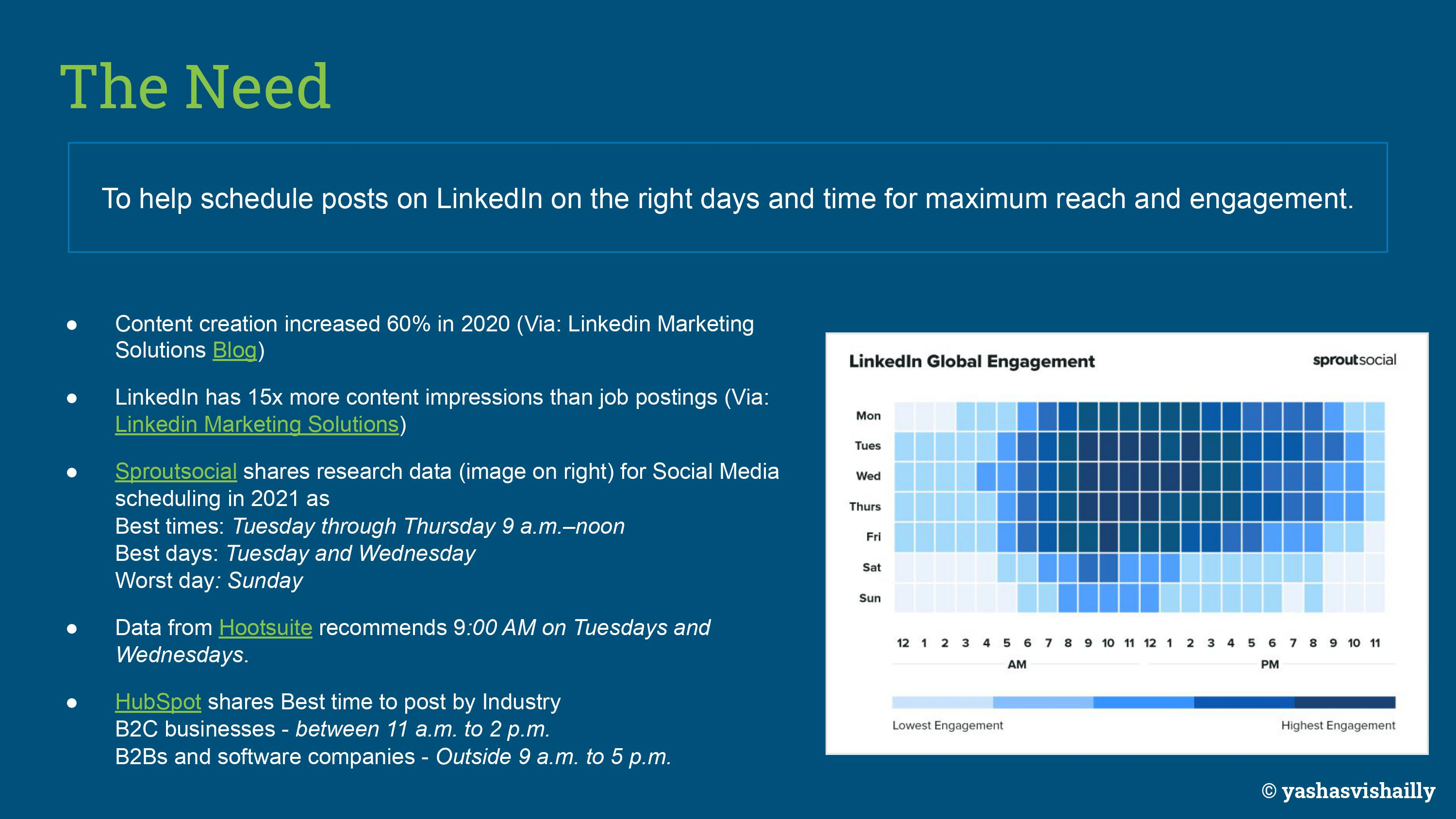I recently began posting regularly on LinkedIn. And when overwhelmed with thoughts and ideas, I could not post all of them together (because, engagement). I took help from third-party scheduling apps. (reference images developed through Hootsuite scheduling)